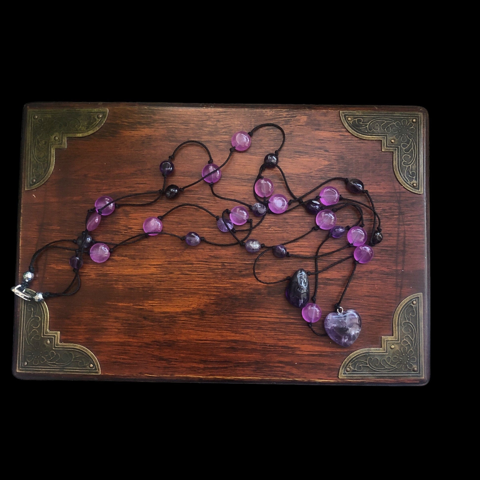 This stunning Amethyst and Black Thread Beaded Necklace is a must-have for any boho style lover! Handmade with natural Amethyst beads in various shapes, it features a unique two-layer design and a 925 silver clasp. The contrast of the black thread adds a touch of edginess to this elegant piece. Elevate any outfit with this beautiful necklace.