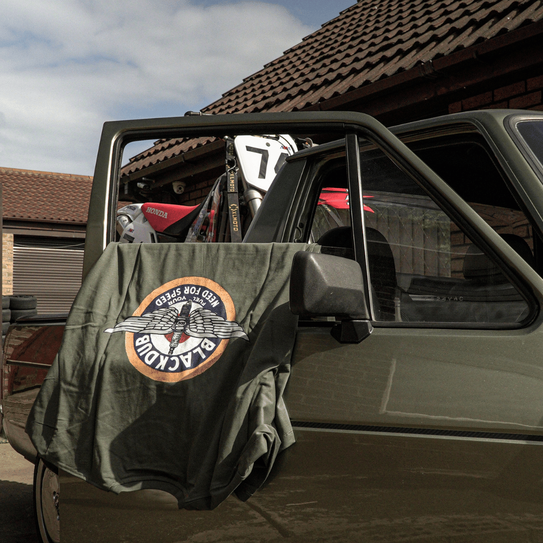 Each design is meticulously hand-sketched by our in-house artists, infusing a touch of authenticity and craftsmanship into every piece. The Circle Wings Tee stands as a tribute to the legacy of the Black Dub, a renowned corner on the Isle of Man TT course that once served as a bustling petrol station and motorcycle garage. Embrace the heritage and spirit of speed with this timeless piece that embodies the heart and soul of the legendary Black Dub.