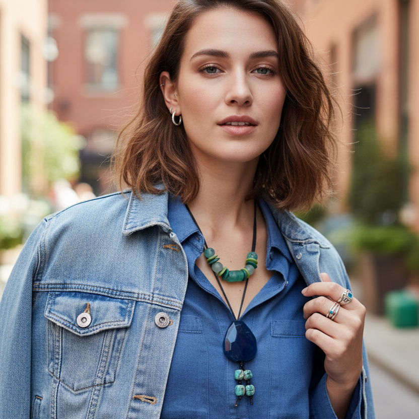Blue Agate and Egyptian Beads Pendant Necklace
