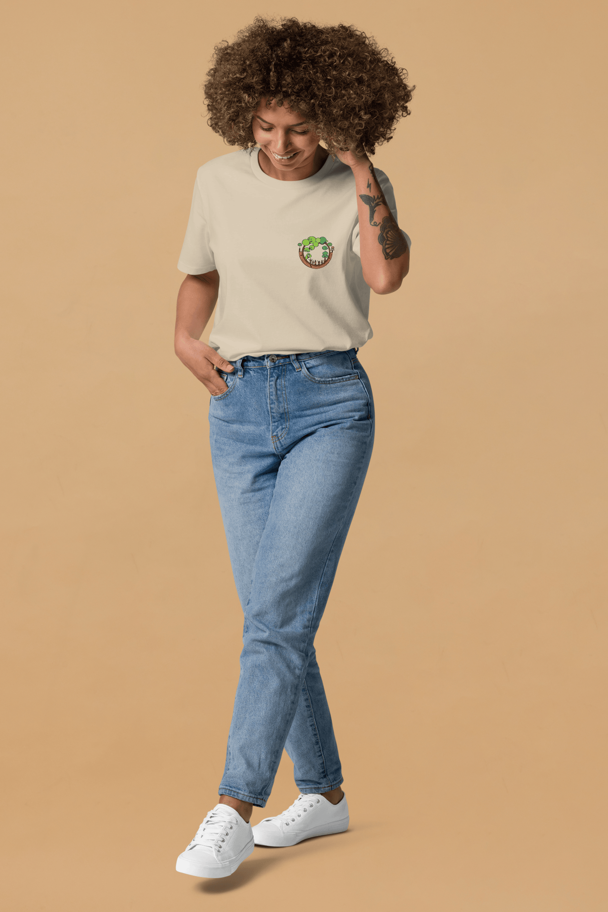 Made from 100% organic ring-spun cotton, this desert dust unisex t-shirt offers a soft, breathable feel and a comfortable medium fit. Designed to last, it features a fabric weight of 5.3 oz./yd² (180 g/m²), set-in sleeves, a 1×1 rib collar, wide double-needle topstitching, and a self-fabric neck tape for extra durability.