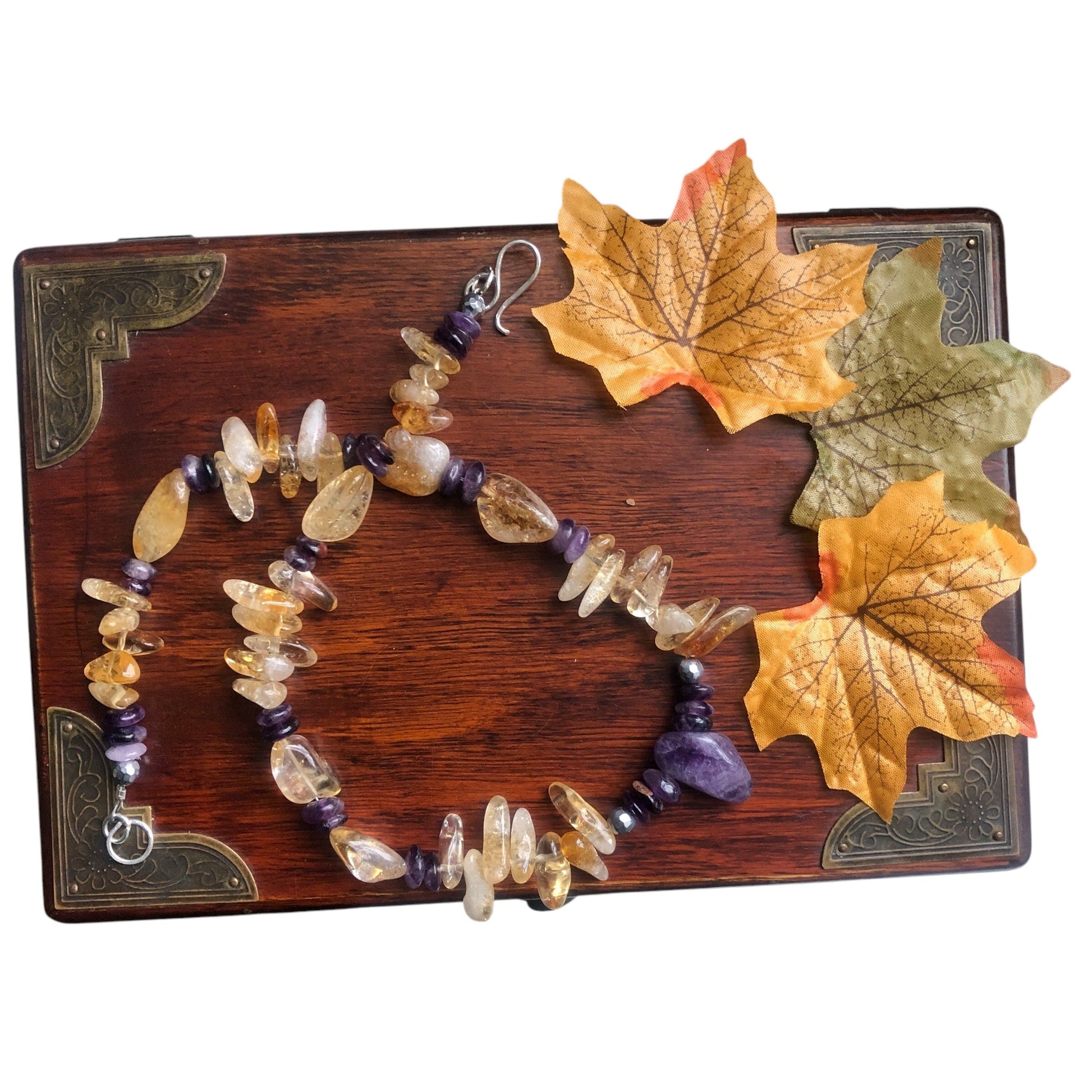 Citrine and Amethyst Beaded Necklace Details: