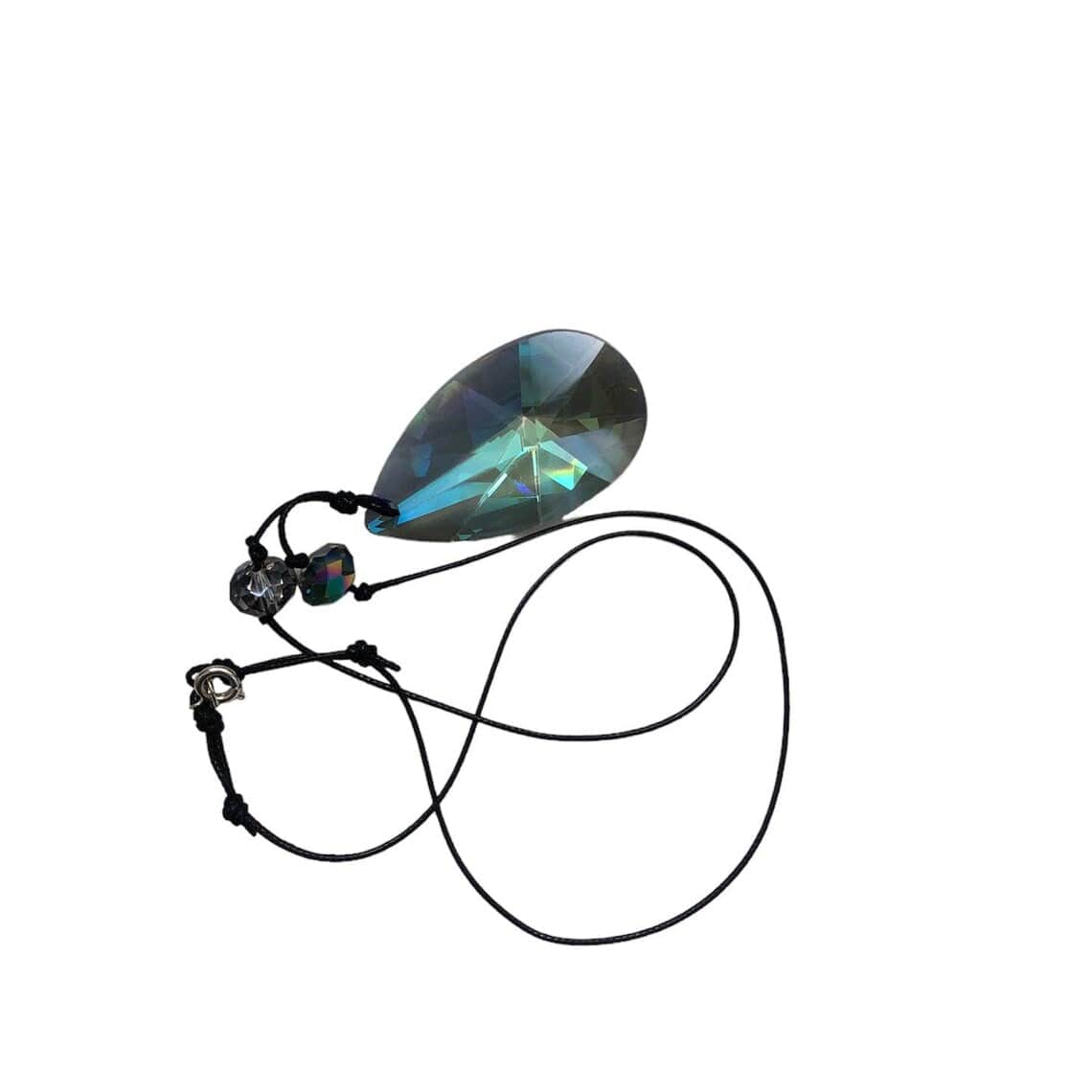Elevate your style with our handmade Cord and Statement Crystal Pendant Necklace. The stunning black cord and big drop crystal pendant exude sophistication and luxury. Perfect for a gala or party, this statement piece is designed with Czech crystal beads and a silver plated clasp for a timeless and elegant look.
