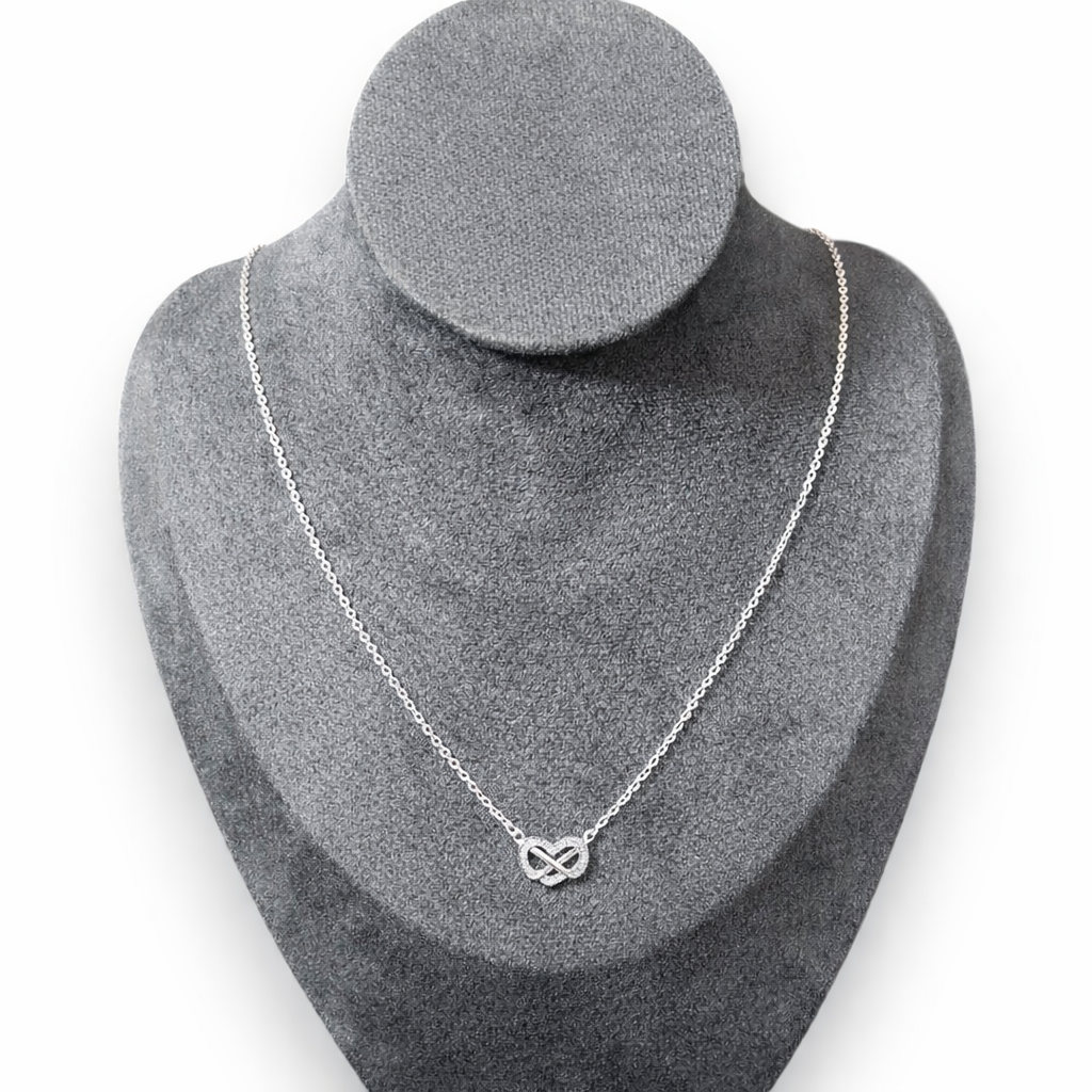 Dainty Infinity Heart Cubic Zirconia Necklace. Made from 925 silver infinity heart attached to a dainty silver necklace.
