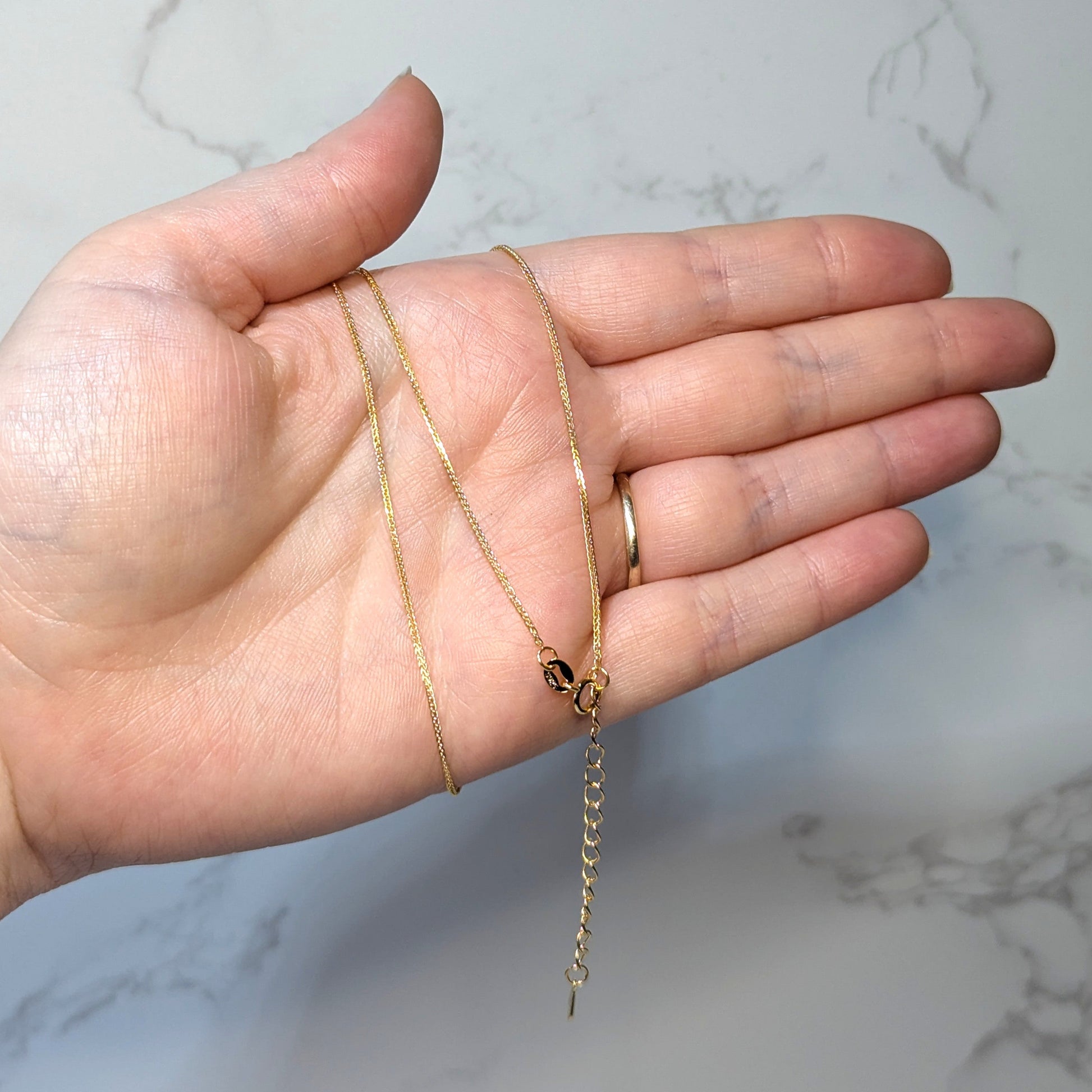 Elevate your jewellery essentials with our Freya 1mm Wheat Chain Necklace, beautifully crafted in 18ct gold plated 925 sterling silver. This intricate wheat link chain offers a subtle shimmer with its detailed texture, perfect worn alone for understated elegance or layered with your other favourite silver pieces.