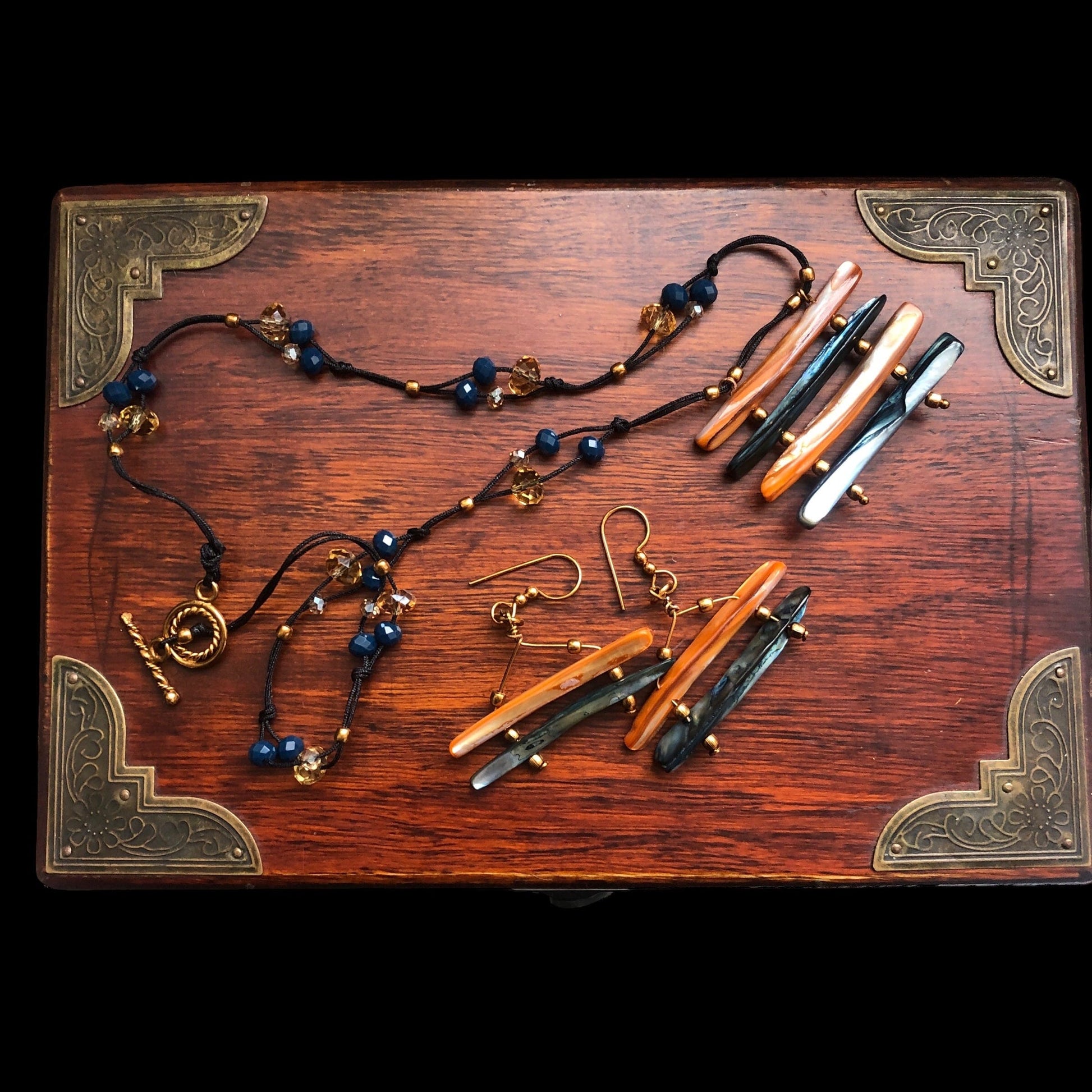 Mother of Pearl and Crystals Beaded Necklace Details: