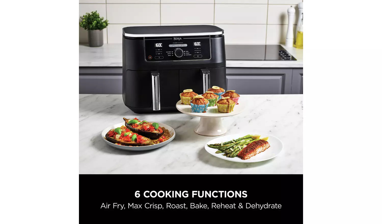 - 6 Cooking Functions: Max Crisp, Air Fry, Roast, Bake, Reheat, and Dehydrate for ultimate versatility
