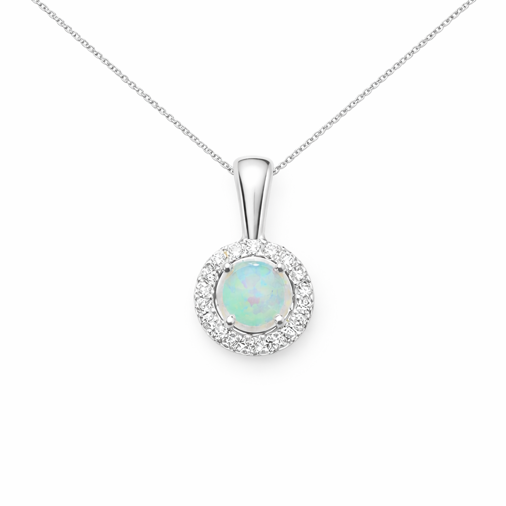 Opal and Cubic Zirconia Halo Necklace