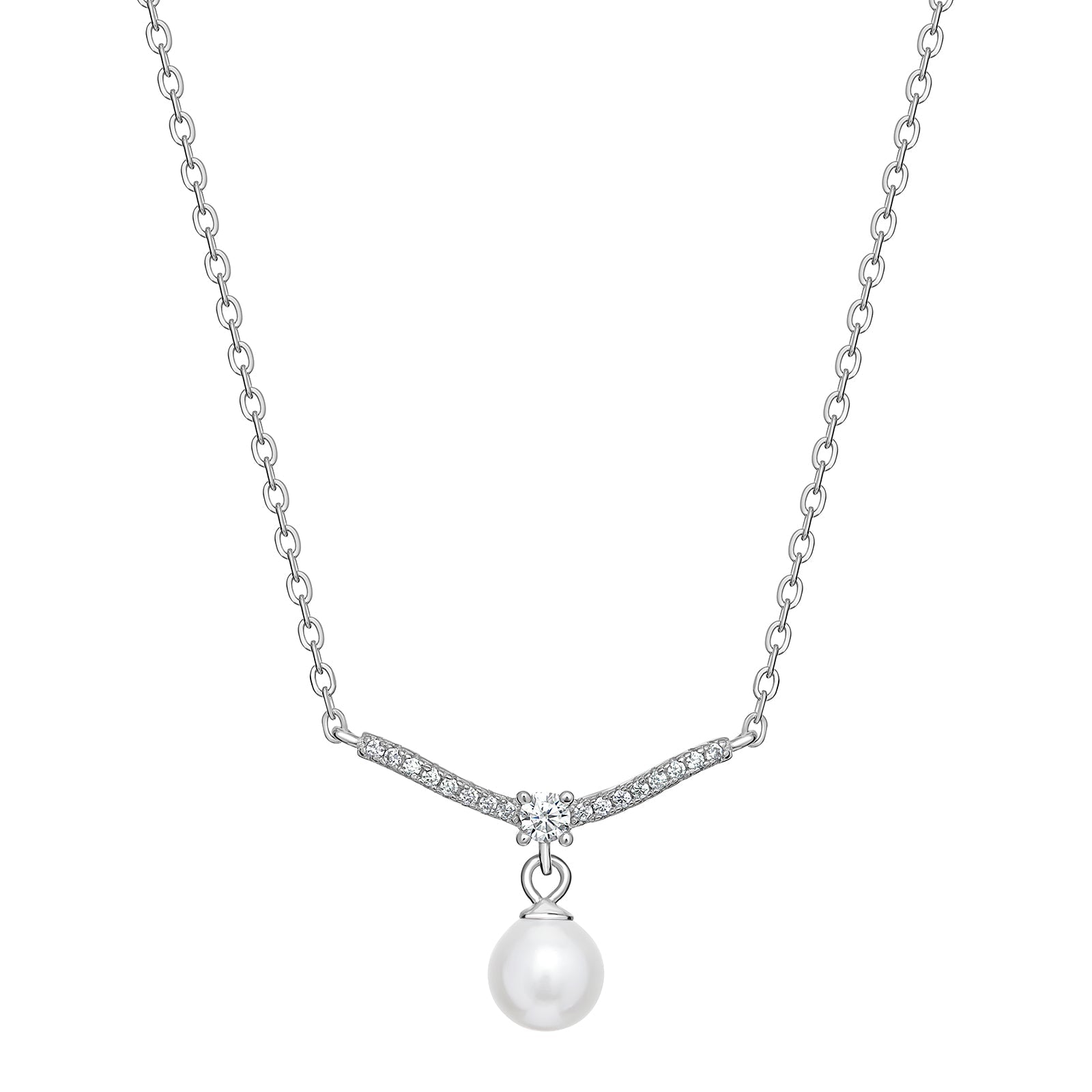 Pearl Drop and Cubic Zirconia Bar Necklace