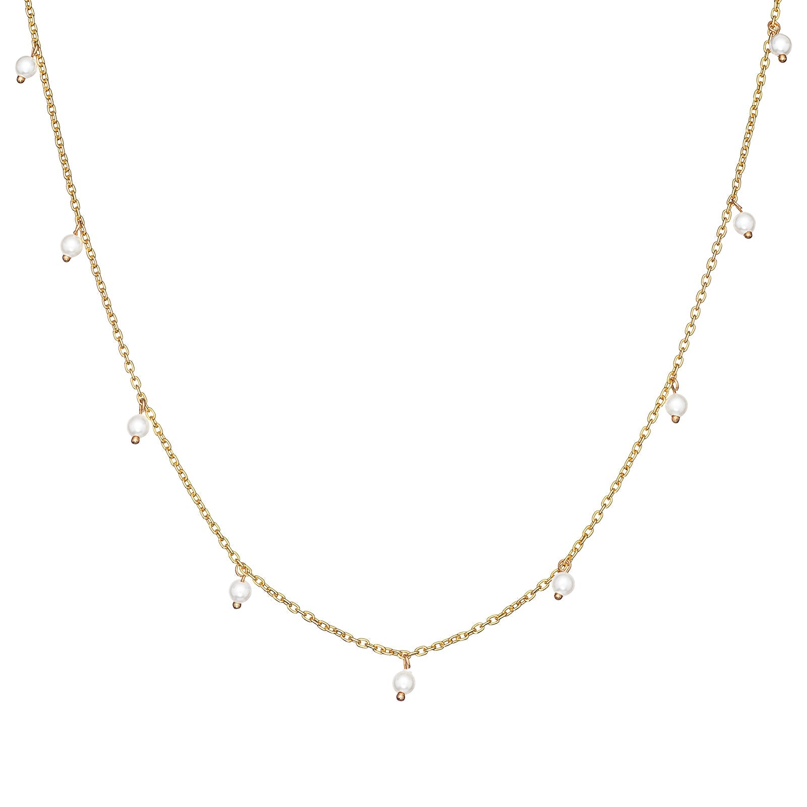 Delicate and elegant, our Pearl Drop Satellite Necklace is crafted from 18ct gold plated sterling silver and adorned with luminous pearl droplets. This timeless piece brings effortless sophistication to any outfit, whether worn alone or layered with your other favourite gold plated necklaces.