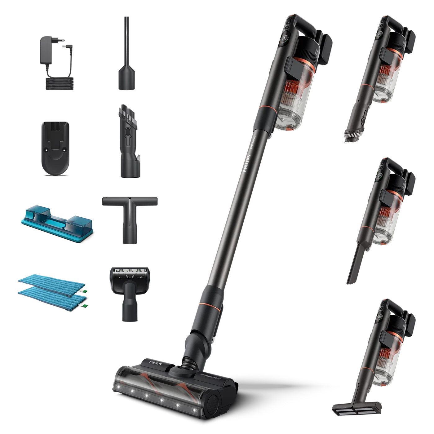 Experience effortless cleaning with the Philips Aqua 7000 Series Cordless Vacuum Cleaner XC7055/01. Combining powerful suction with innovative aqua filtration technology, this advanced cordless vacuum delivers exceptional cleaning performance on all floor types whilst capturing dust and allergens effectively.