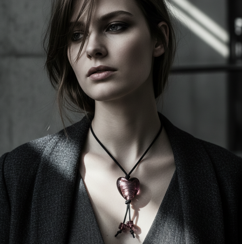 Purple Glass Heart Pendant Necklace Details: