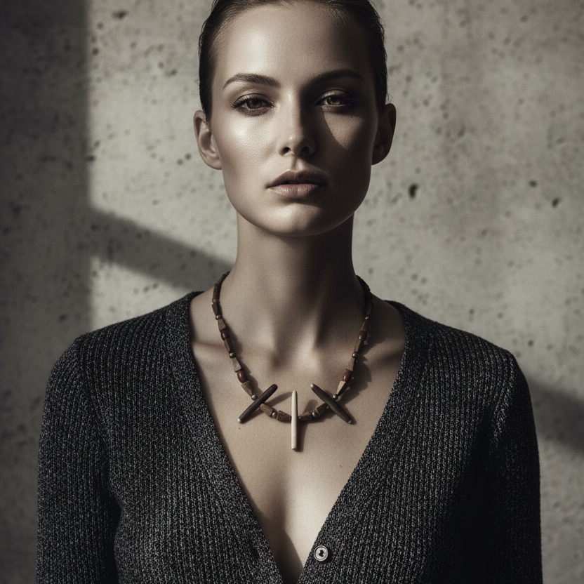 Sea Urchins and Jasper Beaded Necklace Details: